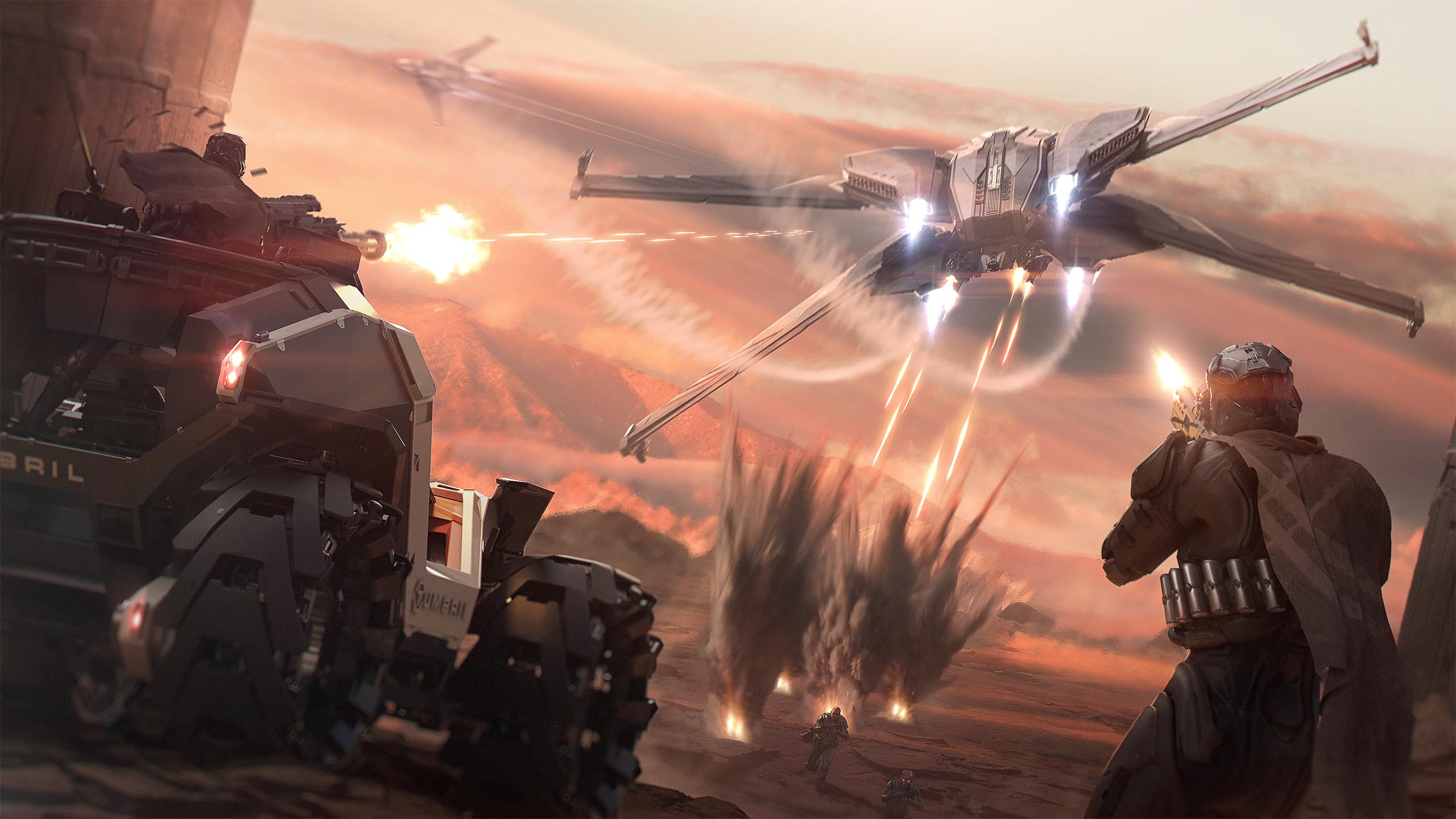English: RSI Scorpius retreating from ground forces