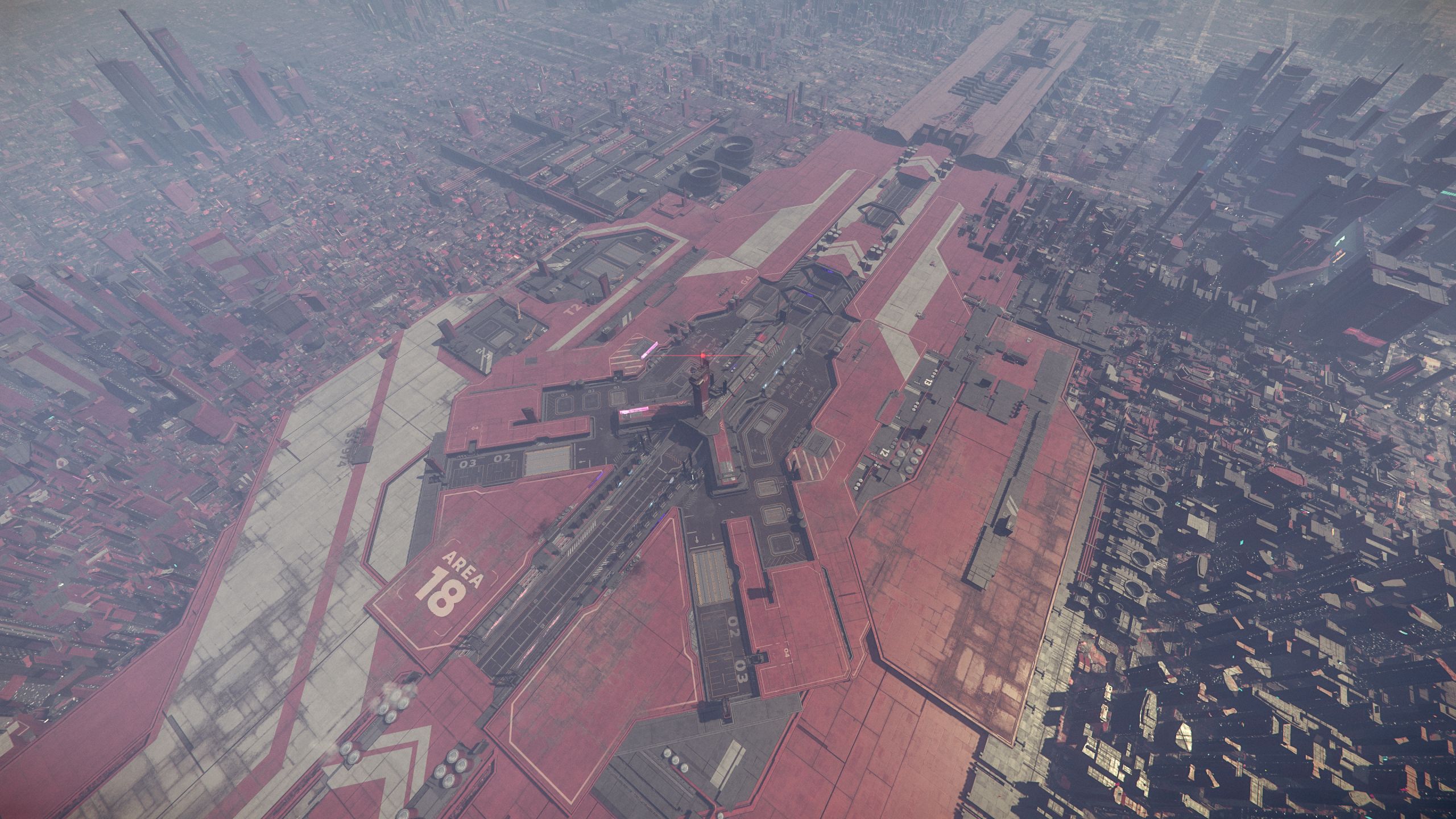 Aerial view of the Riker Memorial Spaceport at Area18, ArcCorp |